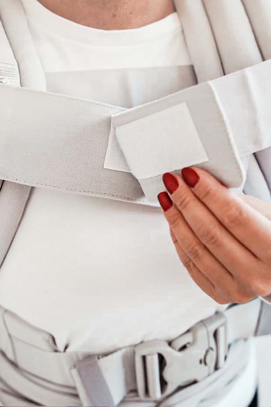 Spécialement conçu pour être porté avec notre KOKADI Porte-Bébé TaiTai SilverLine au dos, nous avons notre original KOKADI Sangle de poitrine en coton 100% biologique. Cela répartira encore mieux le poids de votre bébé et évitera que les bretelles ne glissent sur votre épaule.
