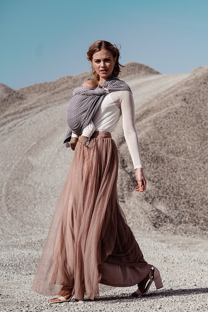 Dans nos RingSlings doux et câlins, vous pouvez porter votre bébé de la naissance à la fin de votre période de gestation confortablement et de manière ergonomique, blotti avec amour contre vous et profiter de moments de portage uniques et magnifiques.