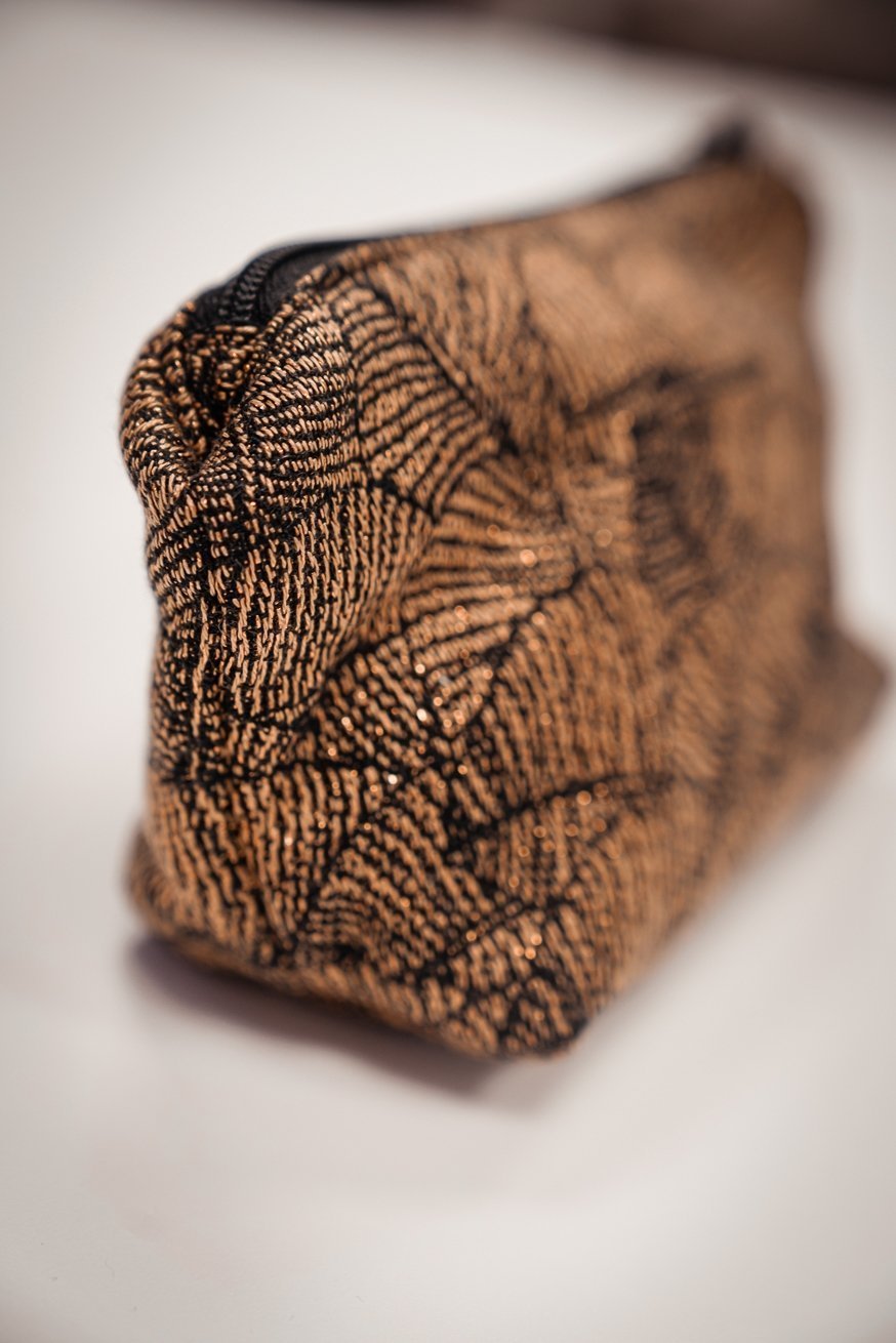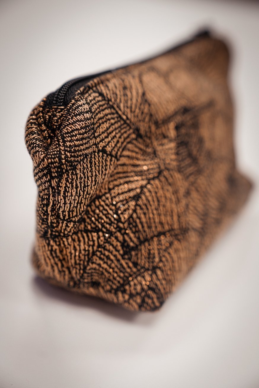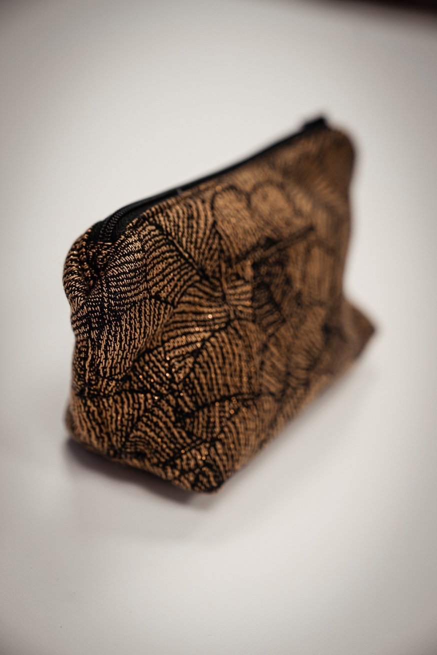 Il KOKADI Borsa per cosmetici - ovviamente in tessuto a tracolla. Incantevoli piume, su un magico fondo oro. Il nostro design Leaves Lynne affascina davvero tutti.