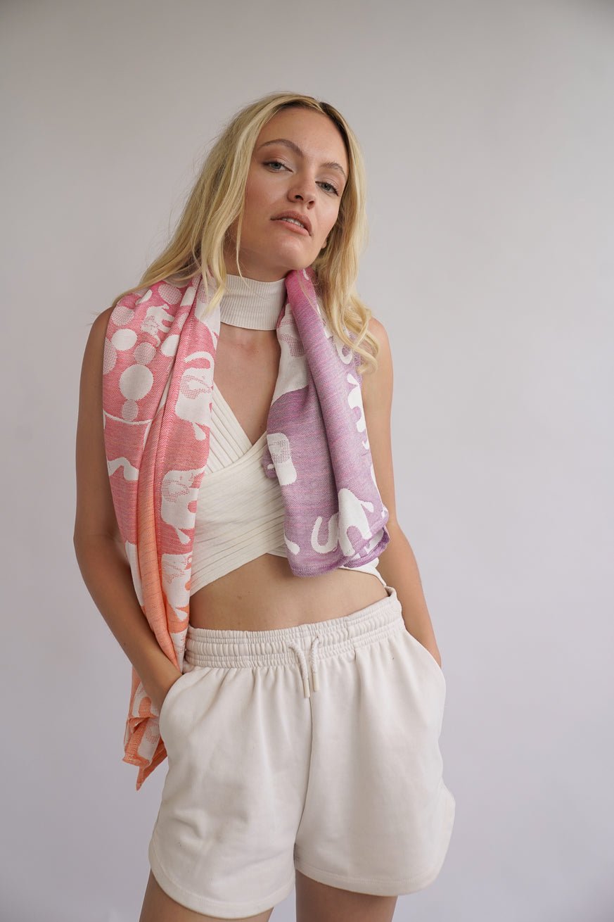 Intrecciato a quattro strati, questo tessuto coccolone serve perfettamente come una coperta estiva leggera, che memorizza il calore attraverso i quattro strati! Ideale per il tempo attuale❤ E anche per la mamma: una mega sciarpa che urla per estate e divertimento! 😎