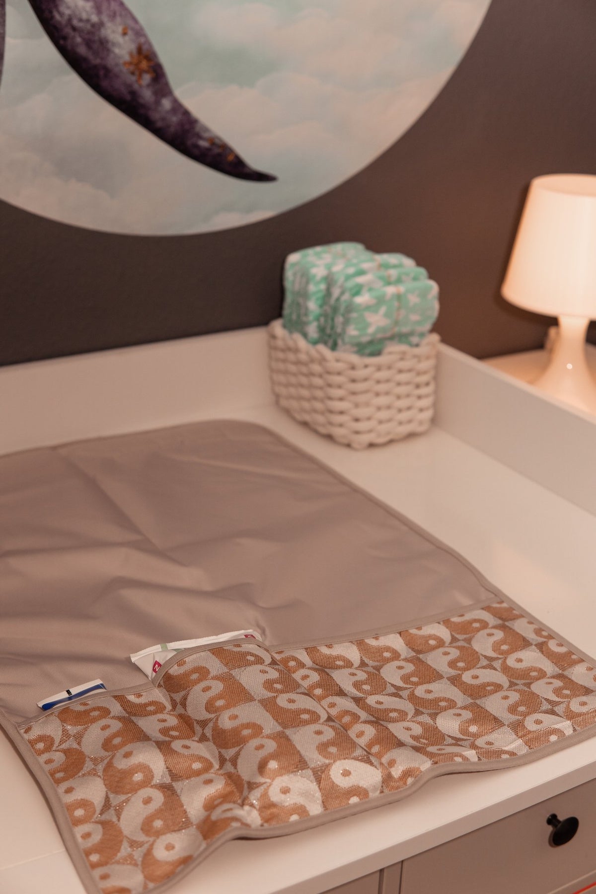 Realizzato con materiali idrorepellenti di alta qualità KOKADI Materassino fasciatoio per un fasciatoio sicuro e igienico per il tuo bambino. Il fondo KOKADI Il tessuto dell'imbracatura garantisce stabilità. Il fasciatoio dispone inoltre di pratici vani portaoggetti per tutti gli utensili importanti di cui hai bisogno durante il cambio.