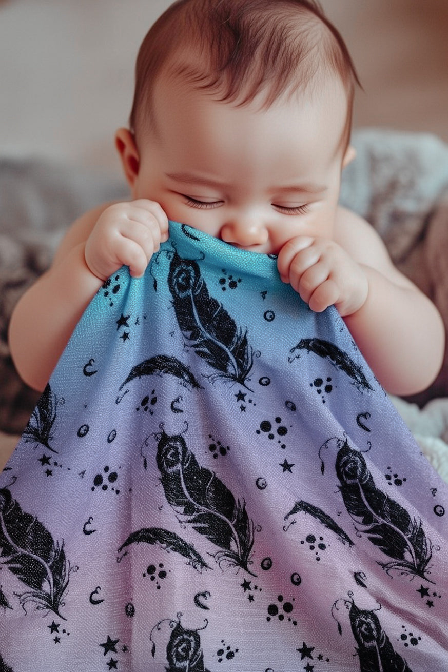 Ob als Einschlafhilfe, Trostspender oder zum Ankuscheln in der Babytrage – unser Musselin Schnuffeltuch im wunderschönen Design Vicky Federn ist ein treuer Alltagsbegleiter für dein Baby.